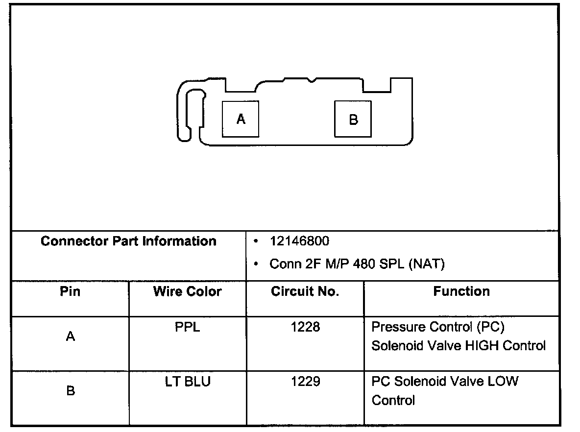 Pressure Control Solenoid Valve Connector, Wiring Harness Side