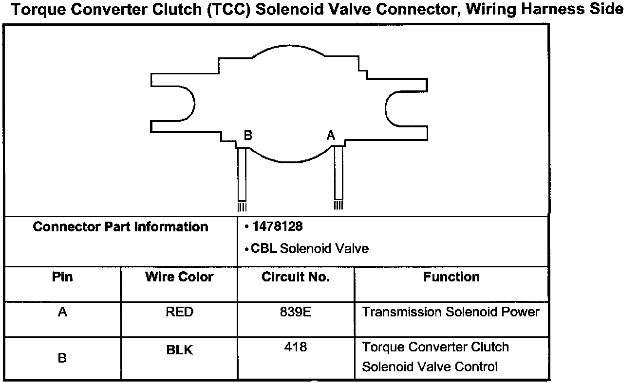 (TCC PWM) Solenoid Valve Connector, Wiring Harness Side