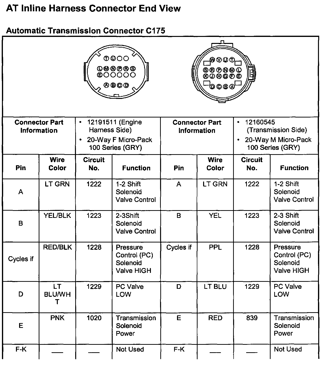 1-2 Shift Solenoid Valve Connector, Wiring Harness Side