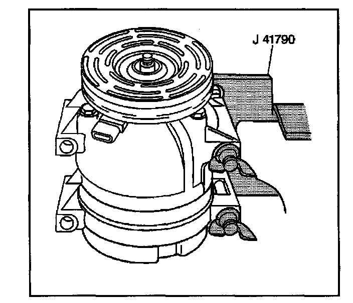 2. Clamp the compressor holding fixture, J 41790 in a vise and attach the compressor to the J 41790.