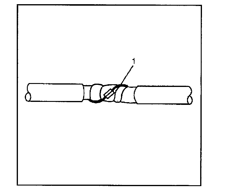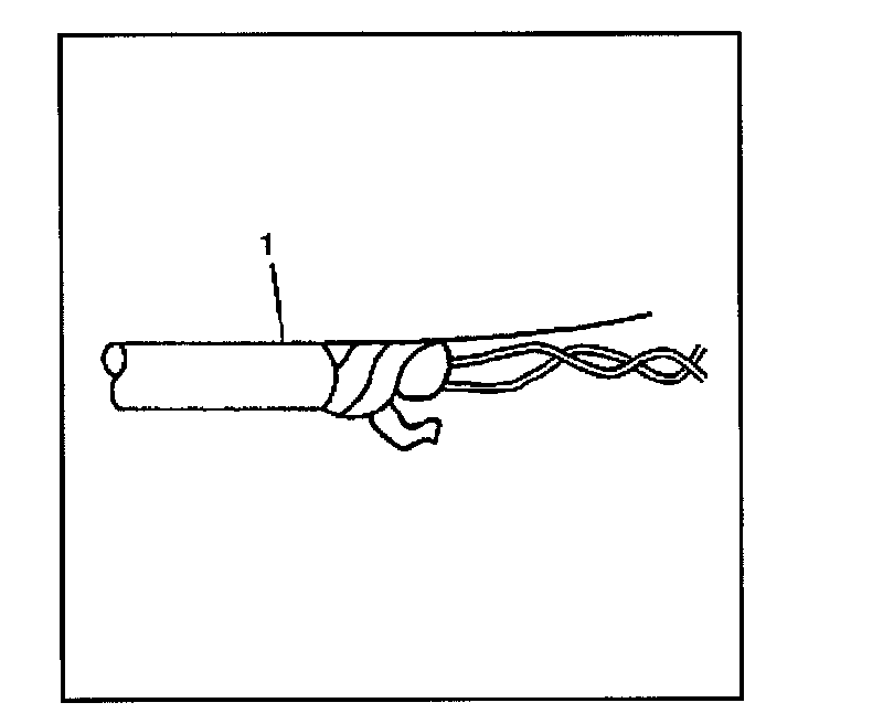 Twisted/shielded cable is used in order to protect wiring from electrical noise. Two-conductor cable of this construction is used between the radio and the Delco-Bose Reg speaker/amplifier units and other applications where low level, sensitive signals must be carried. Follow the instructions below in order to repair the twisted/shielded cable.1. Remove the outer jacket (1). Use care not to cut into the drain wire of the mylar tape.