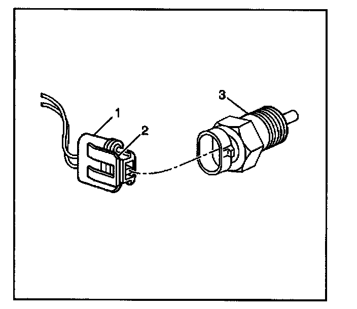 The Engine Coolant Temperature (ECT) sensor (3) is a thermistor (a resistor which changes value based on temperature) mounted in the engine coolant stream. Low coolant temperature produces a high resistance (100,000 ohms at -40 °C / -40 °F), while high temperature causes low resistance (70 ohms at 130 °C / 266°F).