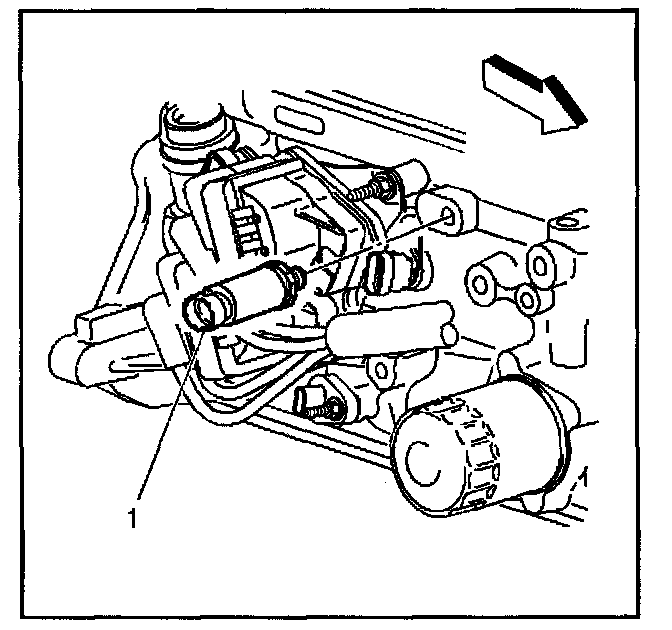 3. Remove the engine oil pressure sensor (1) using J 41712 Oil Pressure Sending Unit Socket.