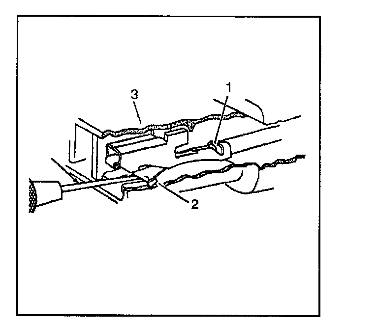 4. Grasp the wire at the back of the connector Body and gently pull the terminal (1) from the connector Body (3).