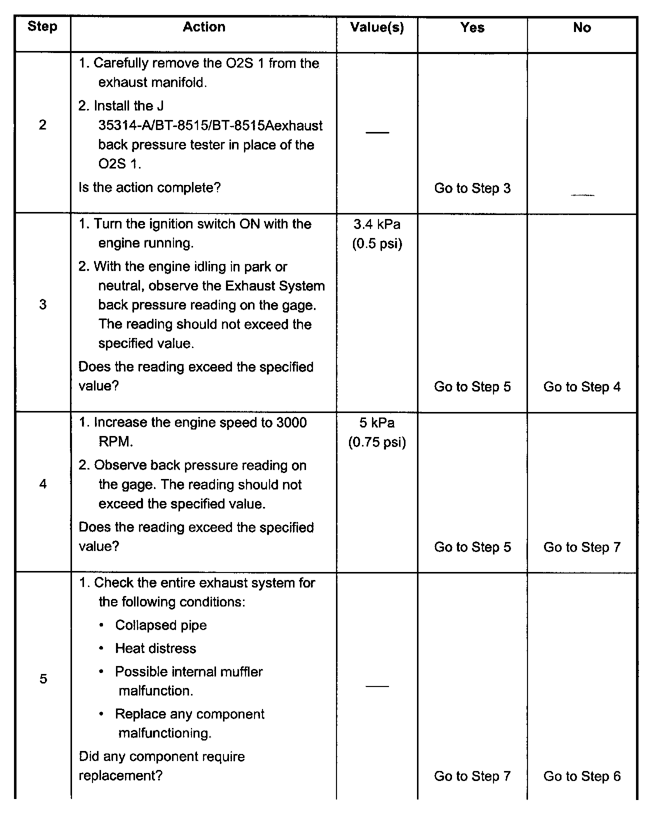 4. If no high back pressure is found at idle, increasing the engine speed to 3000 RPM may find a slight restriction. The added engine speed increases the exhaust flow which will help determine if there is a slight restriction.