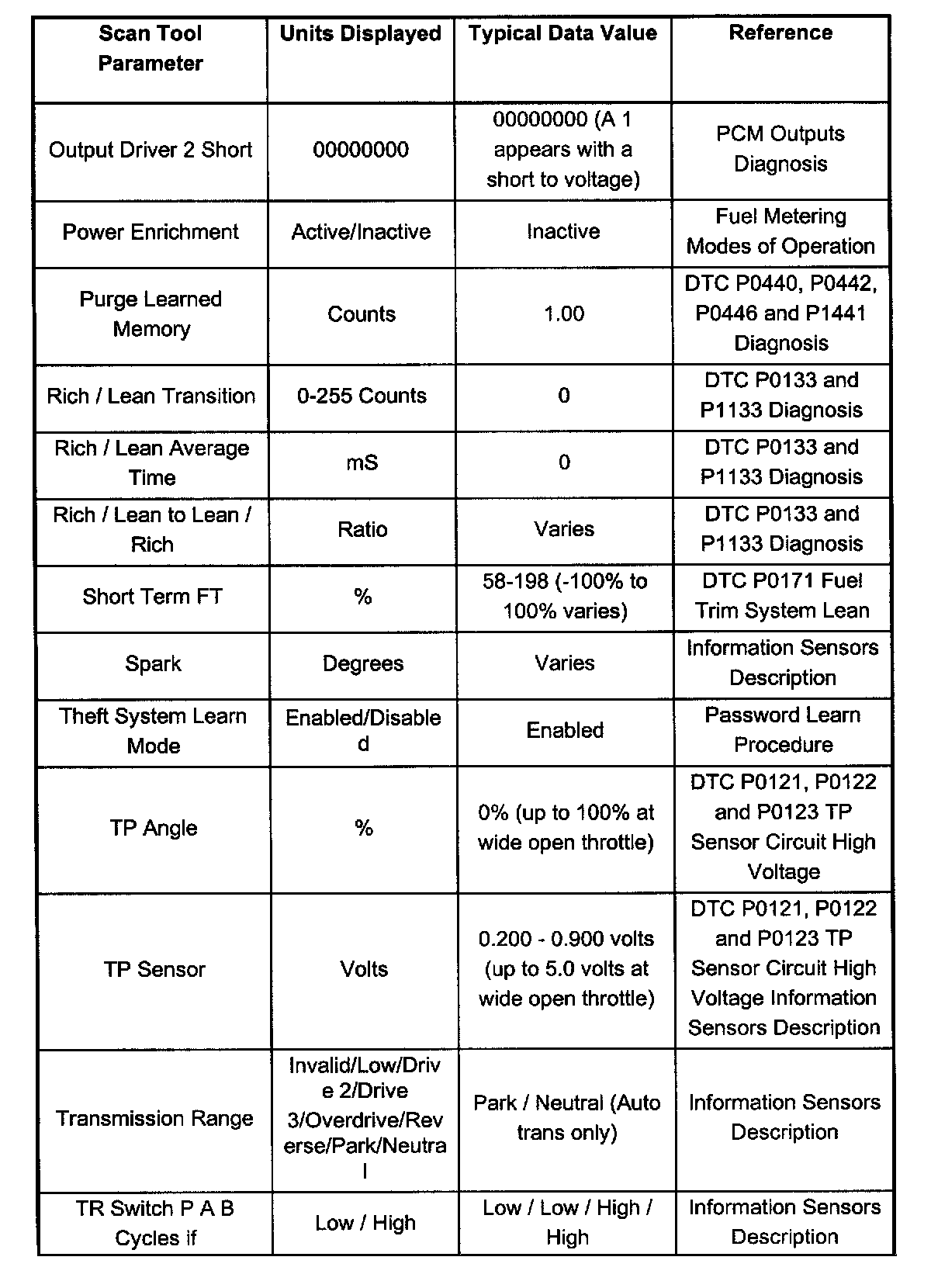 Typical Scan Tool Data Values (Part 3 Of 6):