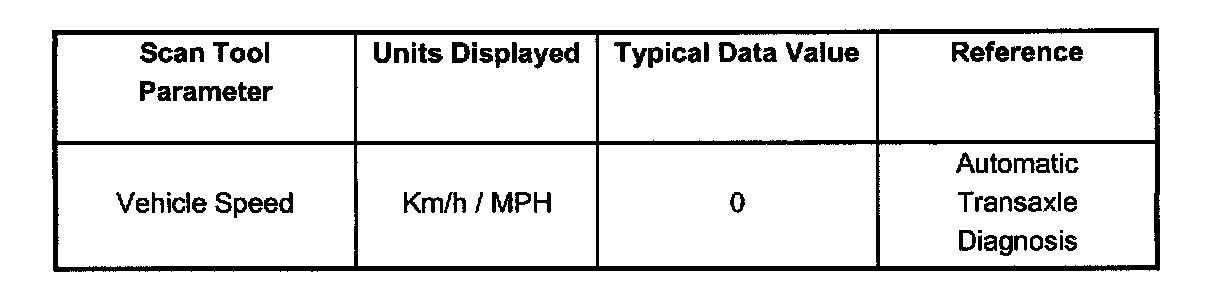 Vehicle Speed - Range 0 - 255 MPH, 0 - 255 km/h: The vehicle speed sensor signal is converted into MPH/km/h for display. The vehicle speed output from the PCM is 4000 pulses per mile. The scan tool uses the class 2 serial data from the PCM to obtain vehicle speed, while the instrument panel cluster, cruise control module and multi-function alarm module use the 4000 ppm output.