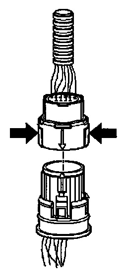- In order to reinstall the external wiring connector, first orient the Pins by lining up the arrows on each half of the connector. Push the connector straight down into the transmission without twisting or angling the mating parts.