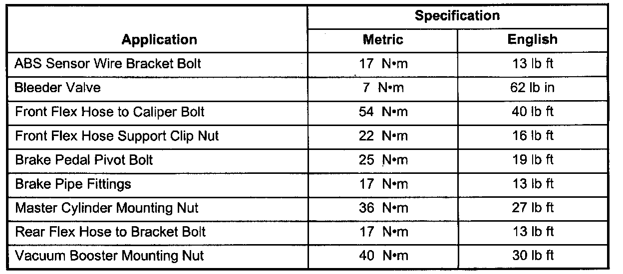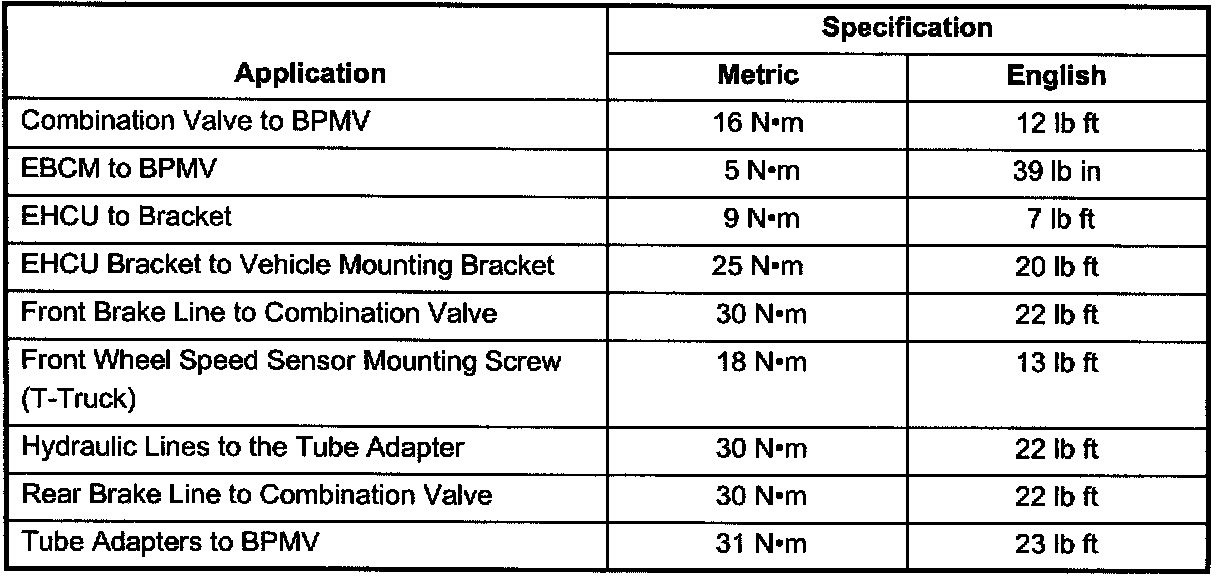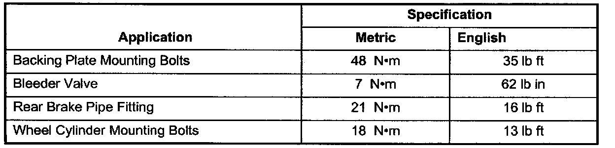 Tightening Specifications
