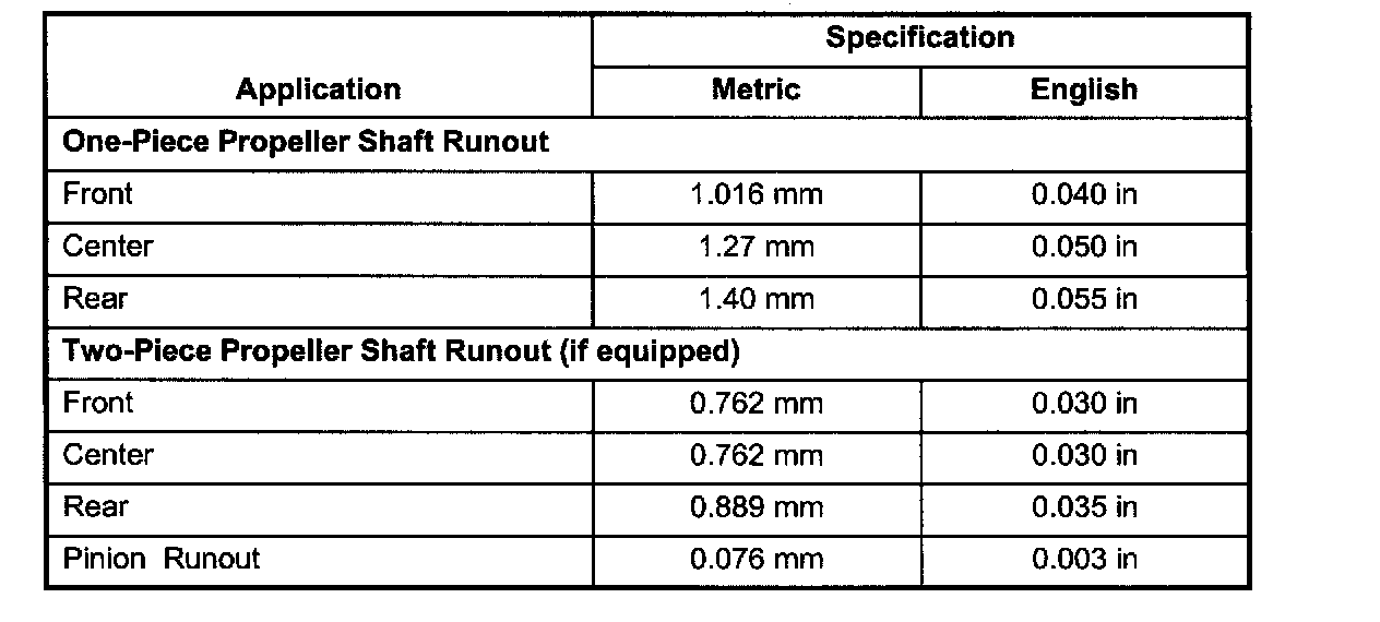Propeller Shaft Runout Specifications:
