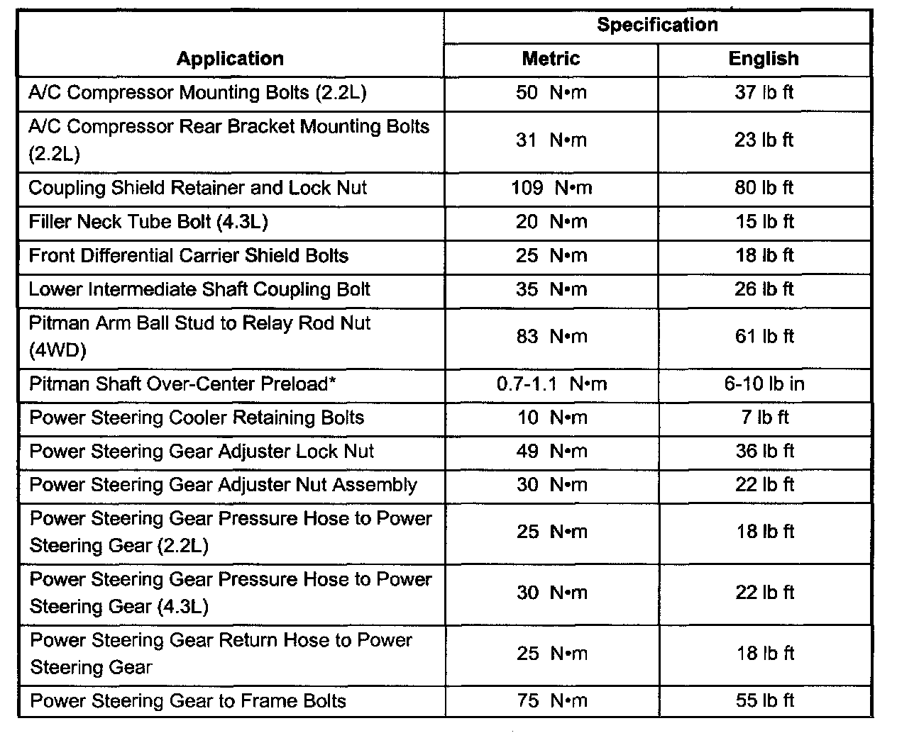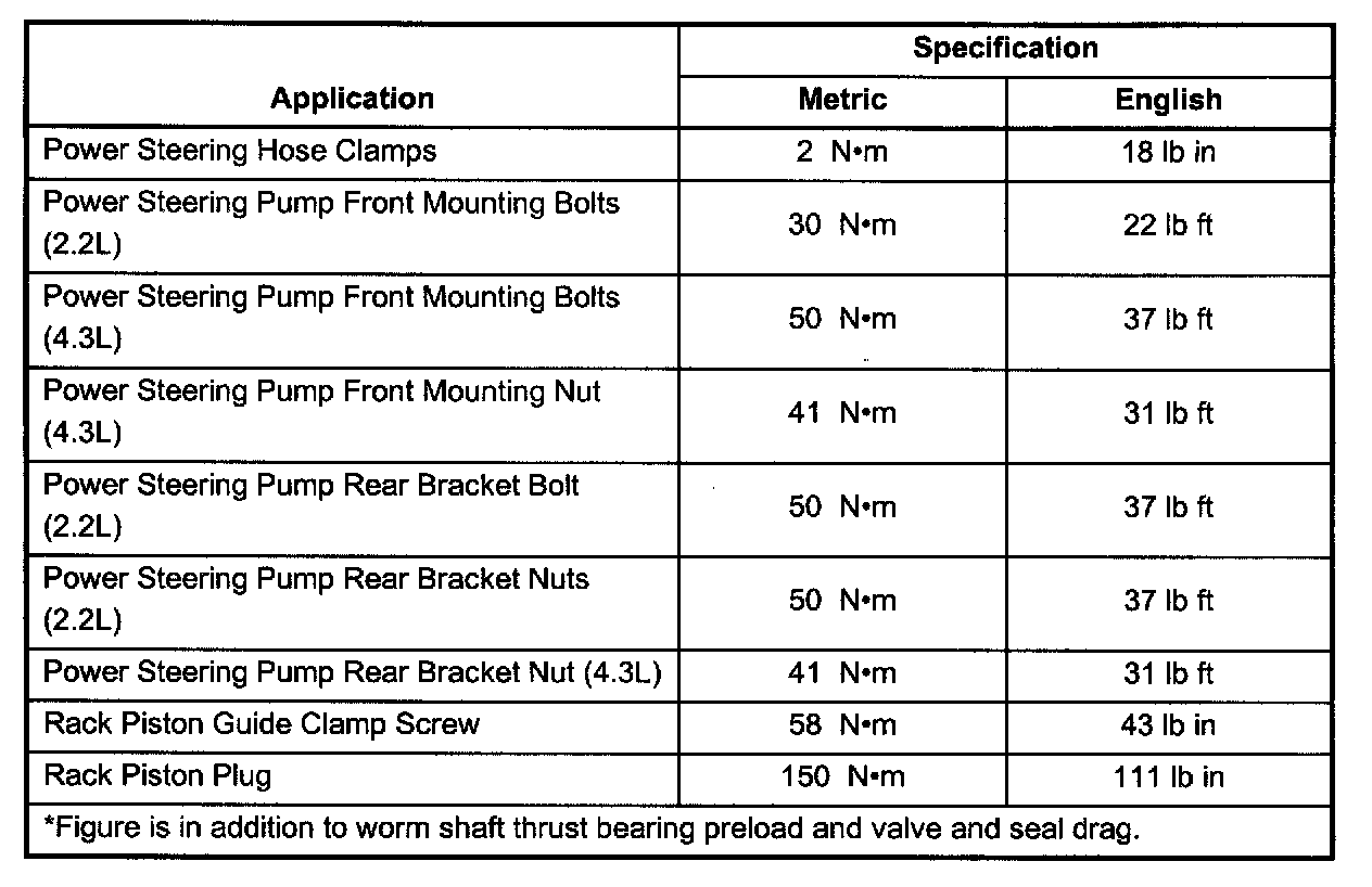 * Figure is in addition to worm shaft thrust bearing preload and valve and seal drag.