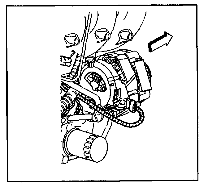 3. Working through the wheel well, remove the generator rear brace from the engine.