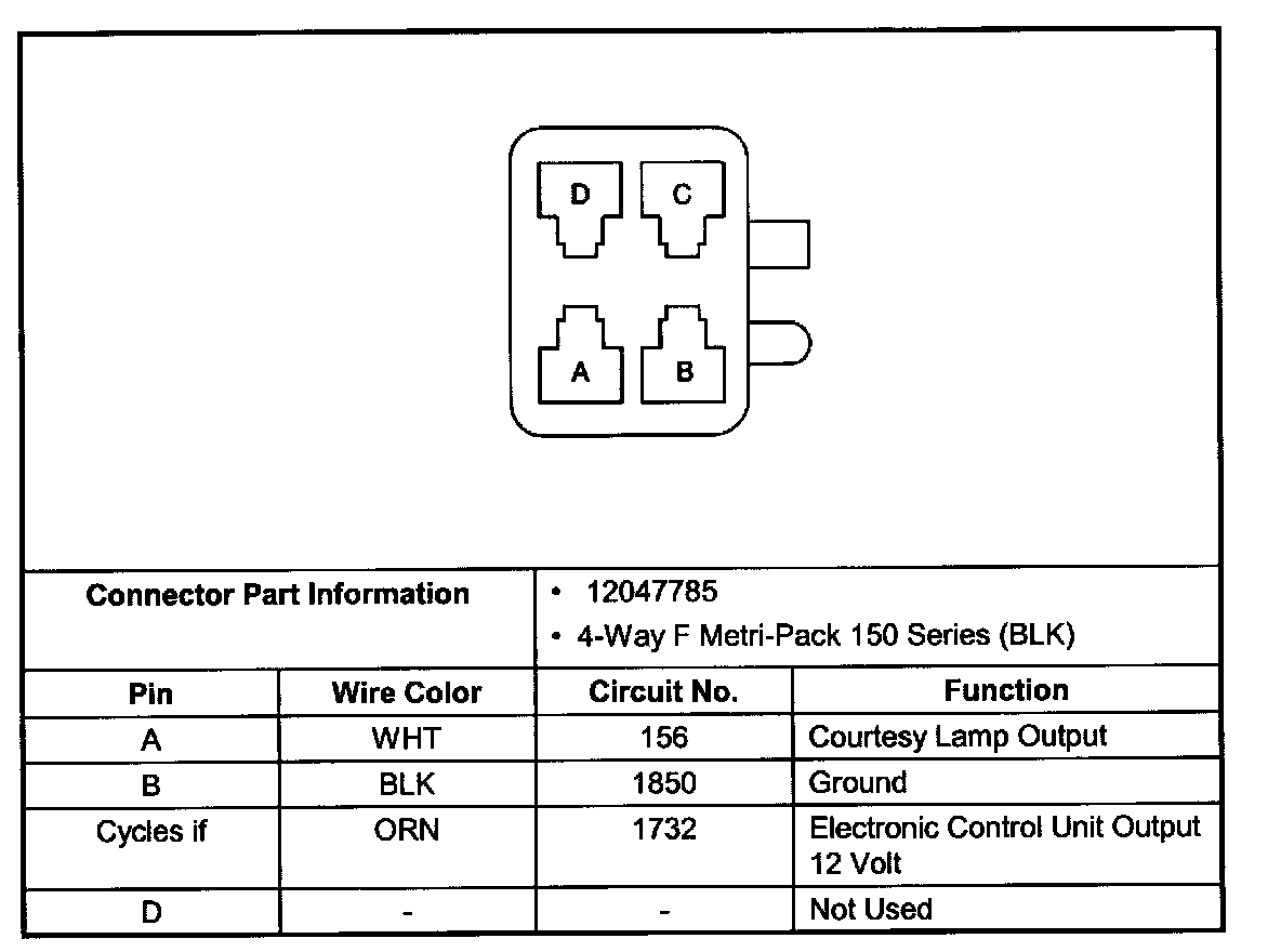 Lighting Systems Connector End Views - Inside Rear View Mirror W/Reading Lamp: