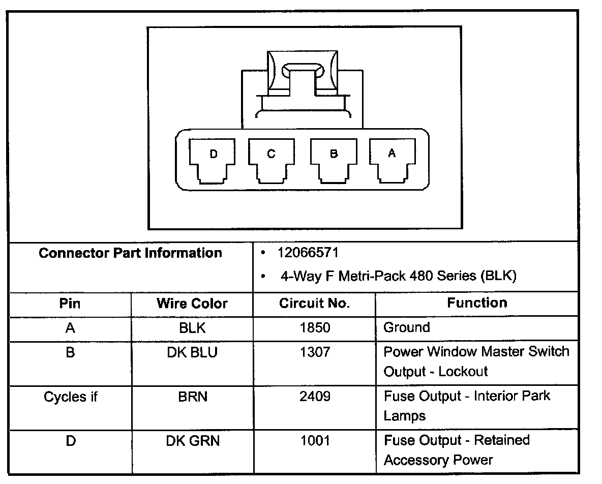 Door Lock And Side Window Switch, Right Front, Connector C1: