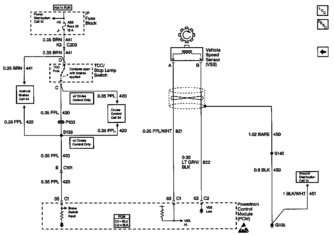 Cell 39: Brake Switch, VSS Inputs (4.3L)