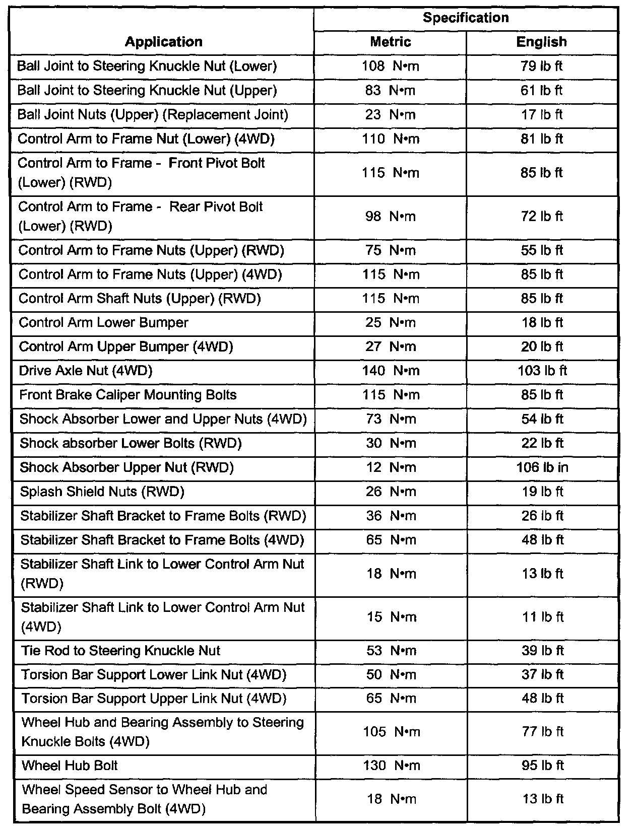 Fastener Tightening Specifications