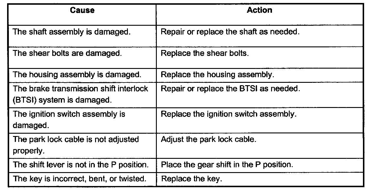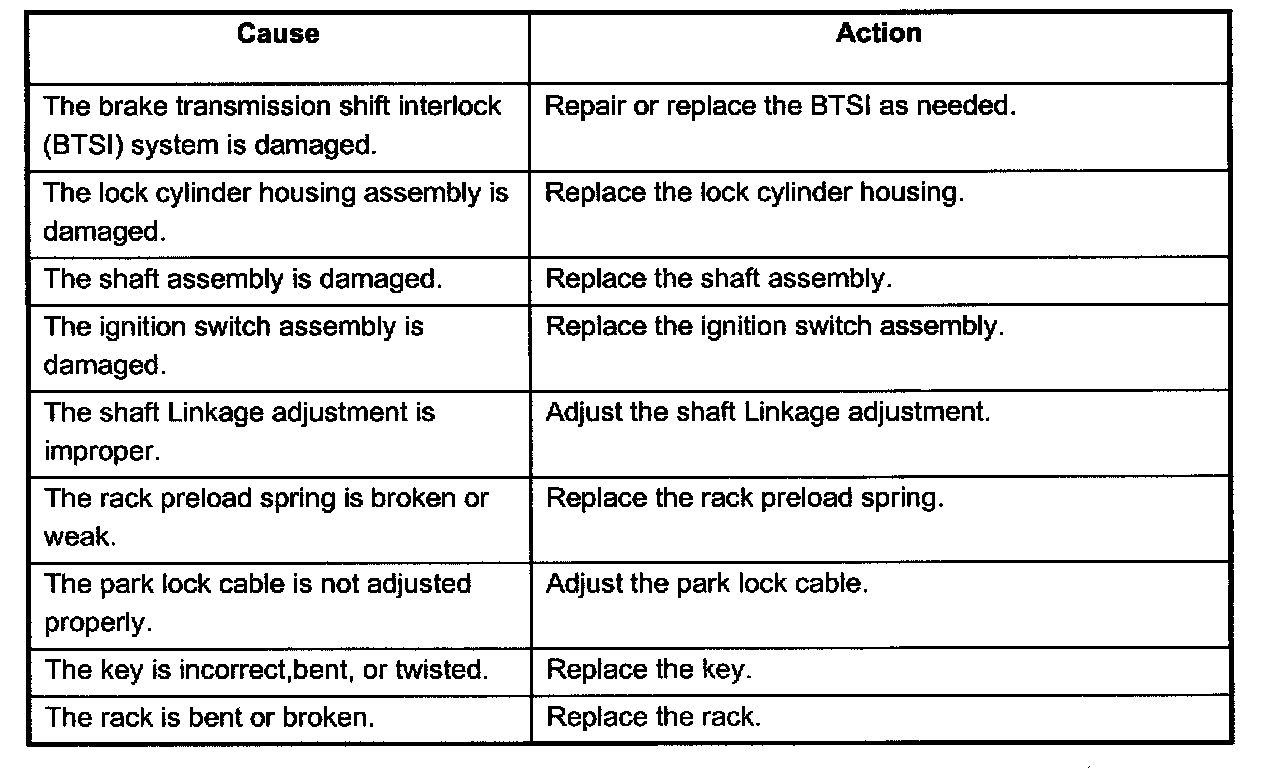 Ignition Switch Lock Cylinder: Testing and Inspection