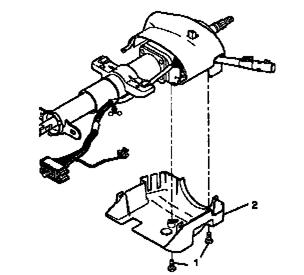 6. Screw the 2 pan head tapping screws (1) into the lower shroud (2).