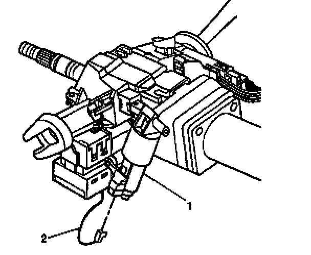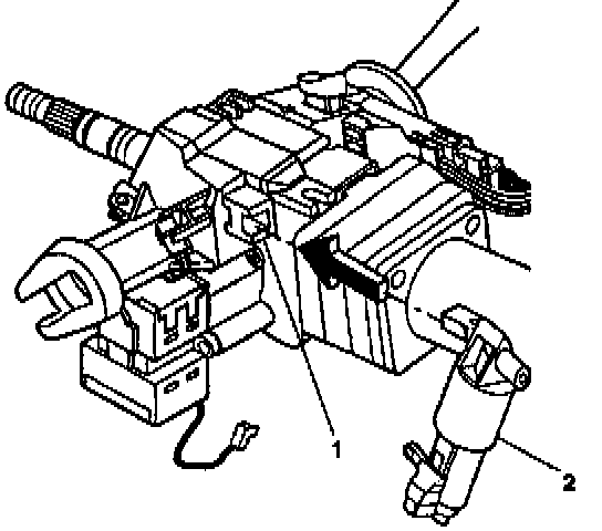 13. Pry the electric park lock (2) off of the lock module assembly (1).