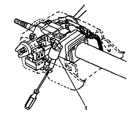 5. Use the screwdriver to push up on the manual override of the electric park lock (1).