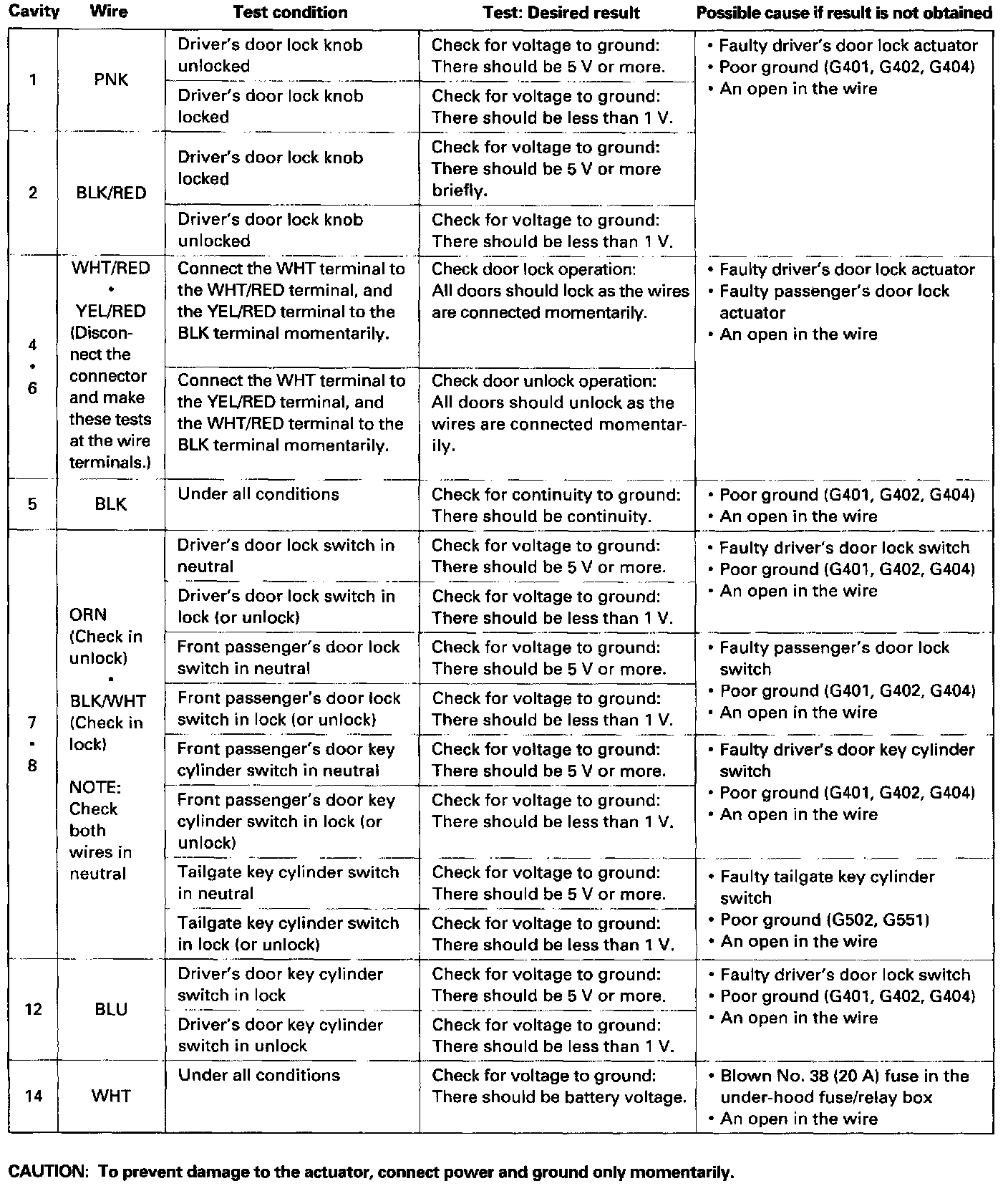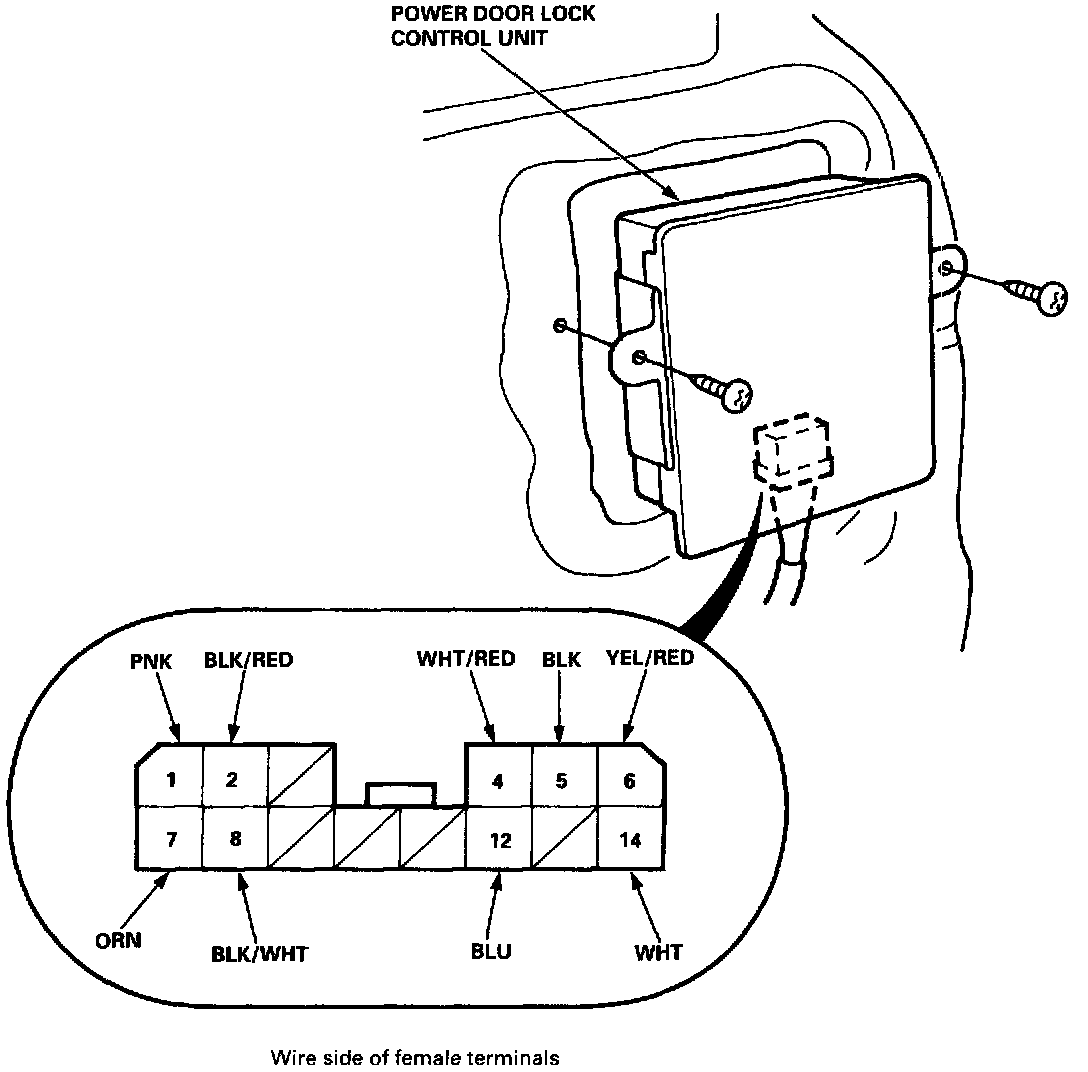 - If the terminals look OK, leave the harness connected, and make the tests shown on the following page by probing the back of the connector.