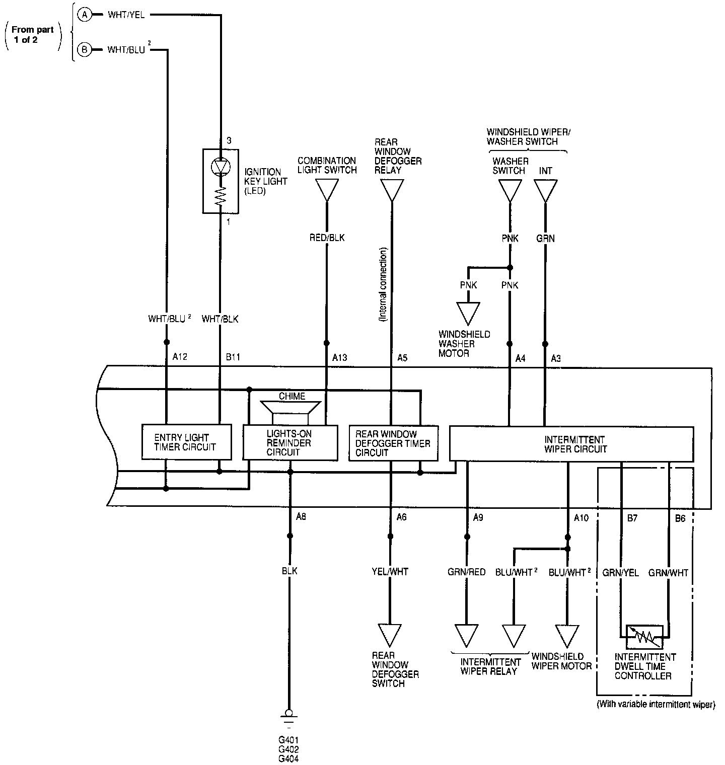 Different wires with the same color have been given a number suffix to distinguish them (for example, WHT/BLU1 and WHT/BLU2 are not the same).