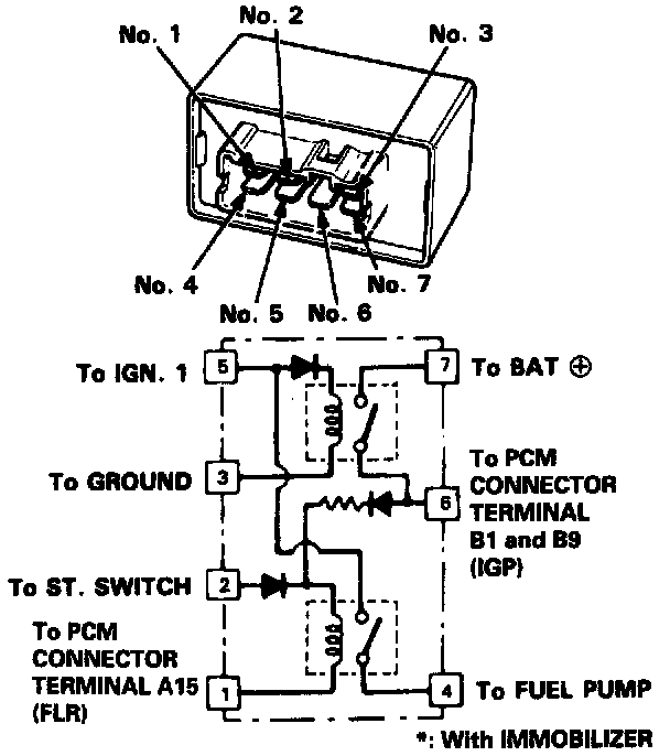 NOTE: If the engine starts and continues to run, the PGM-FI main relay is OK.1. Remove the PGM-FI main relay.