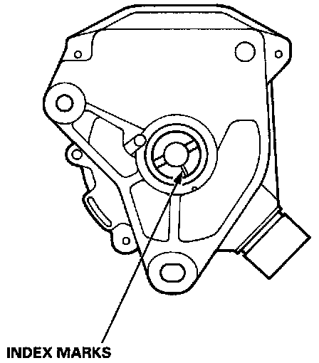 2. Align the index mark on the distributor ignition (DI) housing with the index mark on the end of the shaft.