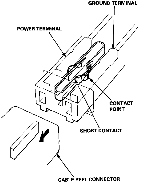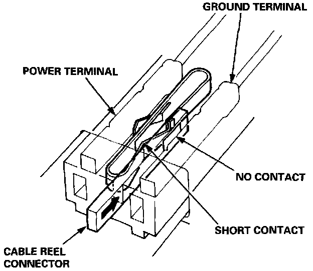 The driver's and front passenger's airbag have a spring loaded lock connector with a built-in short contact. When this connector is disconnected, the power terminal and the ground terminal in the airbag connector are automatically shorted.Connector Halves Disconnected: