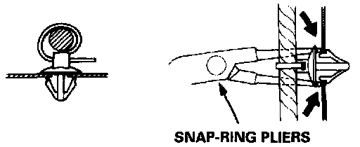 Slip pliers under the clip base and through the hole at an angle, then squeeze the expansion tabs to release the clip.