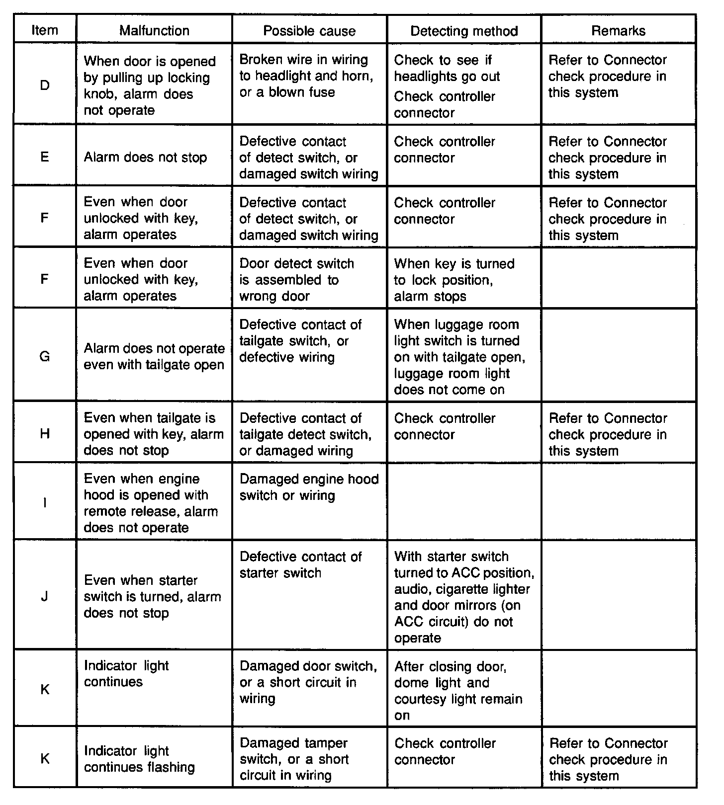 ^ Replace the anti-theft controller with one reserved for test. If a trouble recurs even after replacing the controller, find out the cause of the trouble by referring to System check procedure and the following list.