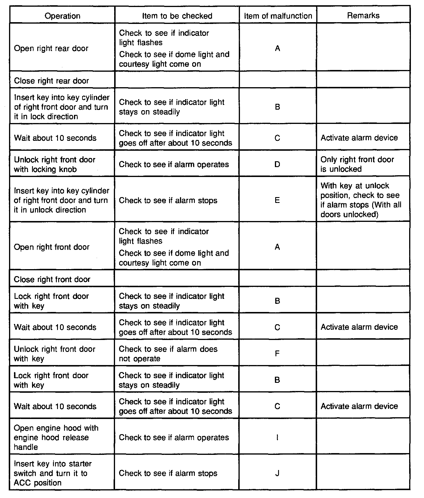 NOTE: When the connector of the anti-theft controller is disconnected, the starter is inoperative. In the checking of short wheel base model, step Nos 16 through 21 and step Nos. 31 through 36 are omitted.