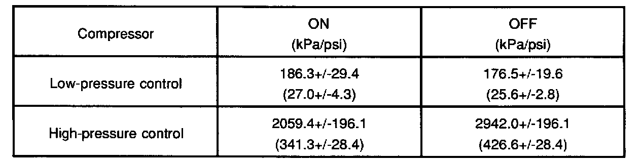 The pressure switch (Dual pressure switch) (2) is installed on the upper part of the receiver/drier, to detect excessively high pressure (high pressure switch) and prevent compressor seizure due to the refrigerant leaking (low pressure switch), so that the compressor is able to be turned