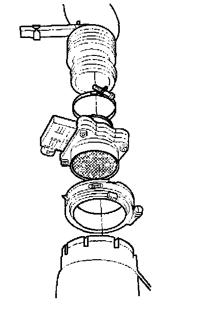 3. Loosen the clamps which secure the intake air duct and the air cleaner to the MAF sensor.