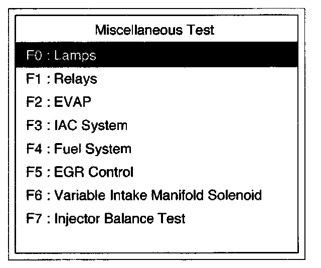 4. Select F0:Lamps Test in the Miscellaneous Test.