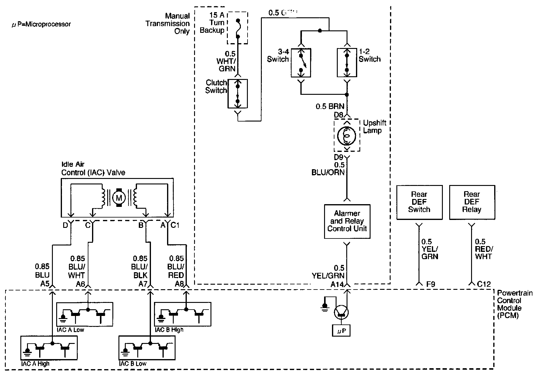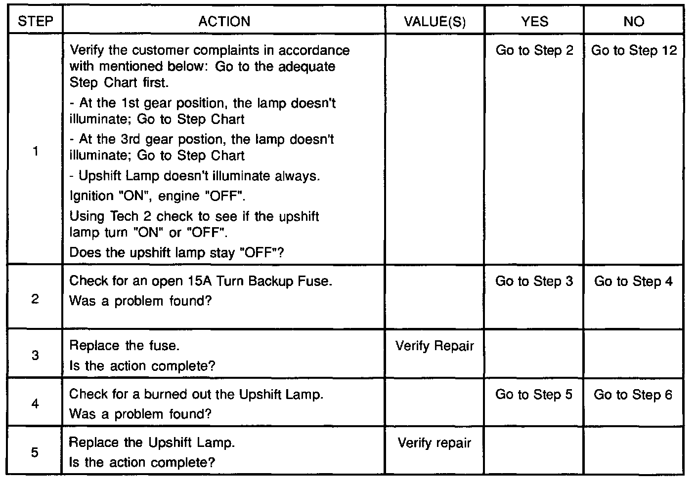 1. This should not turn "ON" the up-shift lamp. If the lamp is "ON", there is a short to ground in BLK or a fault PCM.