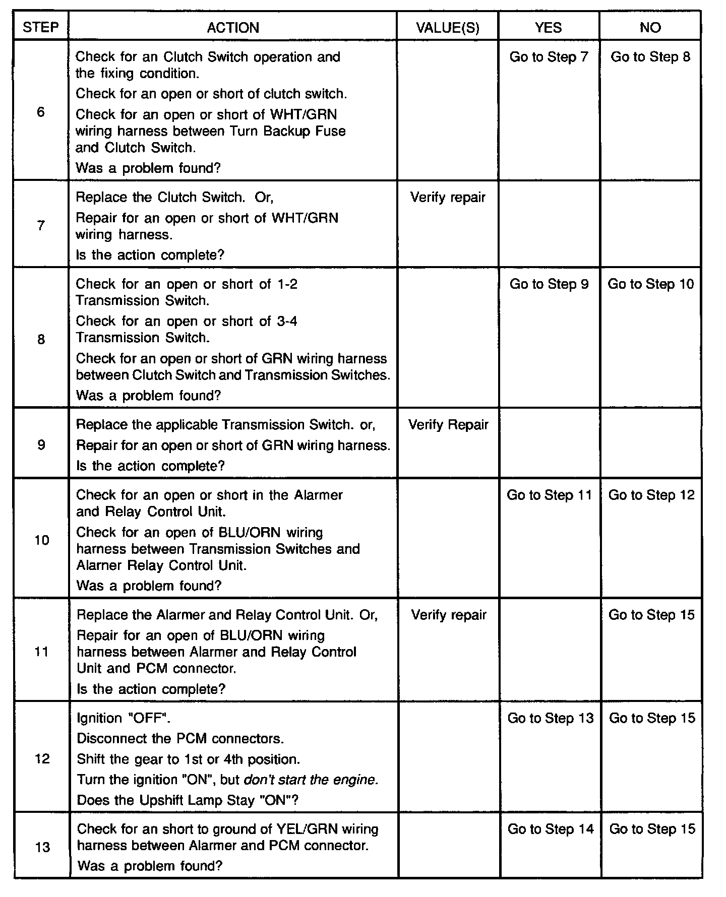2. This checks the upshift lamp circuit up to the PCM connector. If the up-shift lamp illuminates, then the PCM connector is faulty or PCM does not have the ability to ground the circuit.