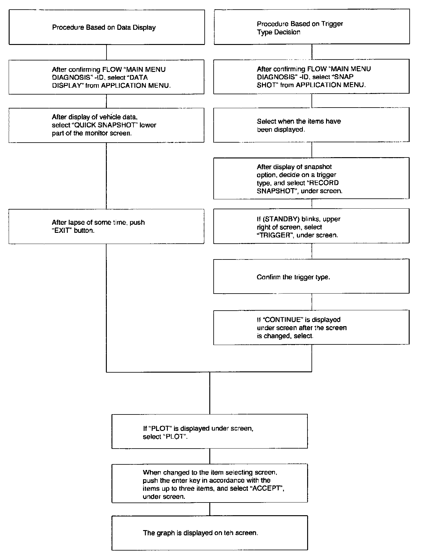 For trouble diagnosis, you can collect graphic data (snap shot) directly from the vehicle.