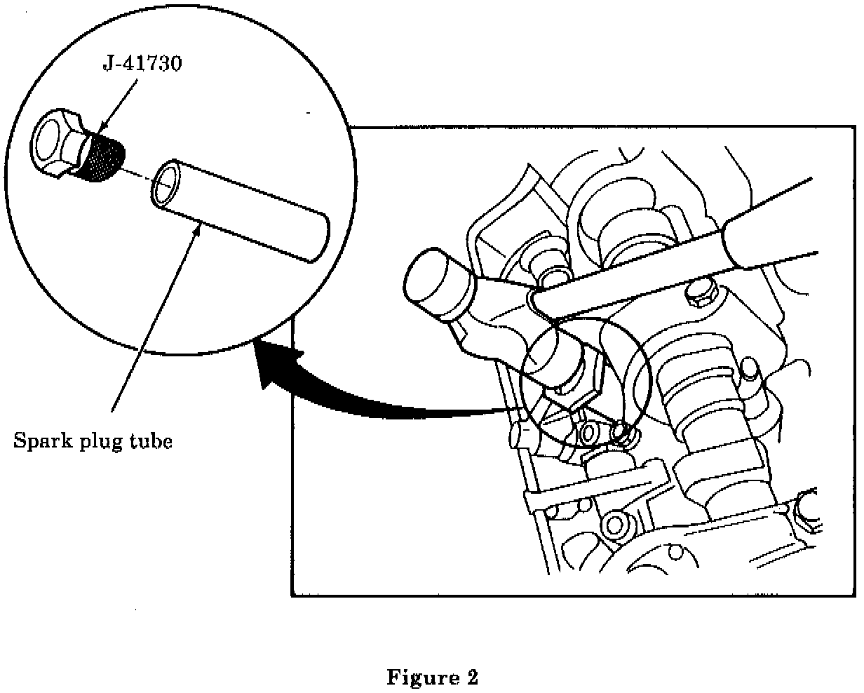 ^ Install new spark plug tube, using Kent-Moore tool J-41730 and plastic-faced hammer (Figure 2).