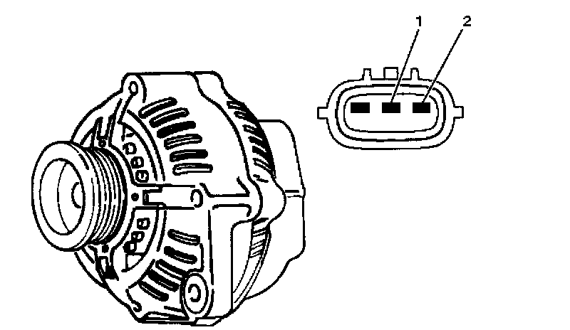1. Disconnect the wiring connector from generator.2. With the engine stopped, turn starter switch to ON and connect a voltmeter between connector terminal L (2) and ground or between terminal IG (1) and ground.