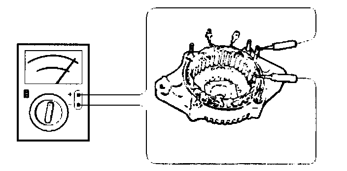 4. Check for continuity between slip ring and rotor core. In case of continuity, replace the rotor assembly.