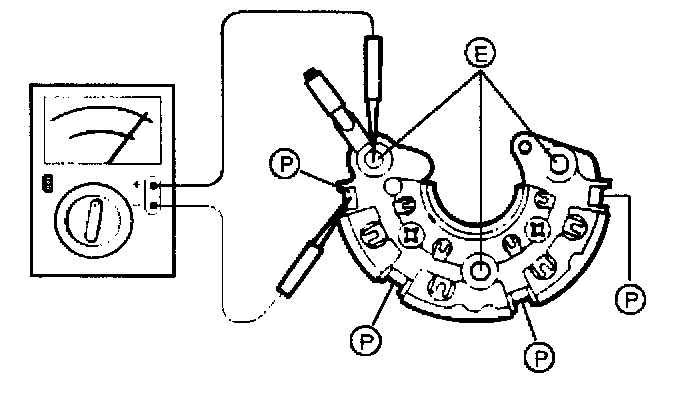 Change polarity, and make sure that there is continuity in one direction, and not in the reverse direction. In case of continuity in both directions, replace the rectifier assembly.