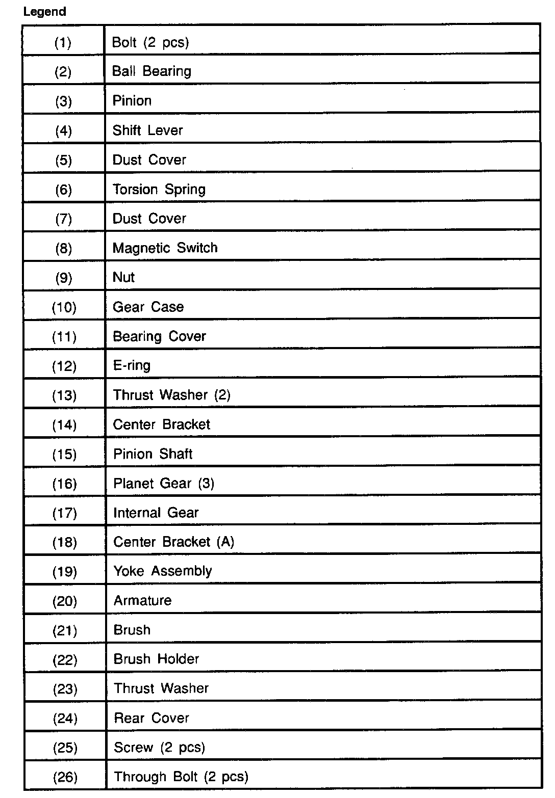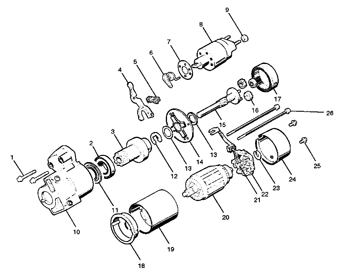 14. Pull off the yoke assembly, then remove armature, washer and center bracket. (A) (13).