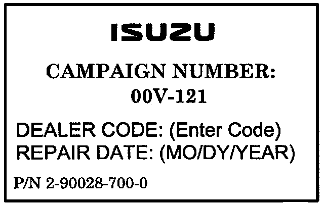 This safety campaign number: OOV-121 and Dealer Code
