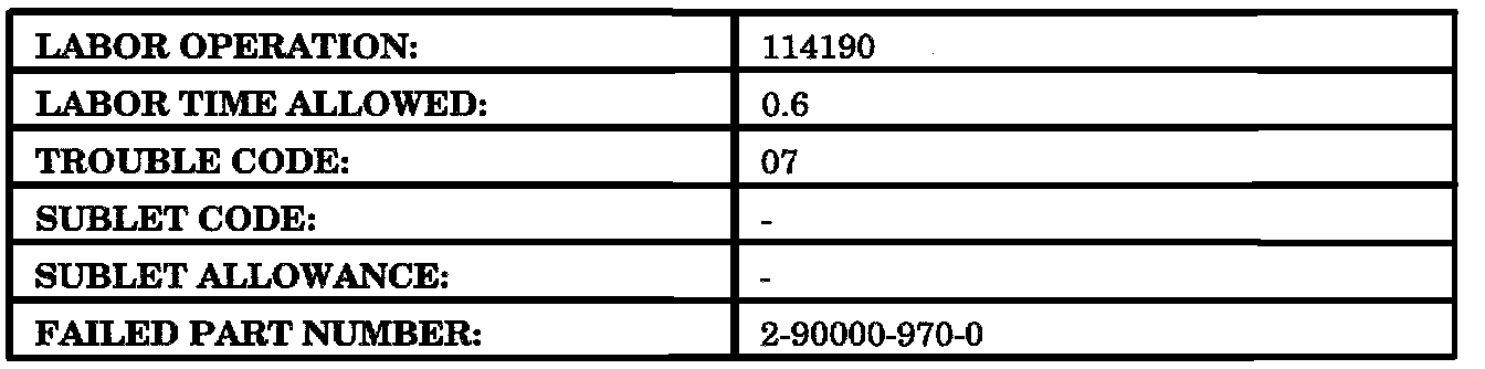 Use Trouble Code 07 (Campaign Bulletin) for this Labor Operation. Labor Time includes administrative time allowance.