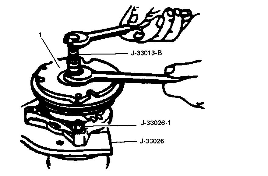 Removal1. Clamp the holding fixture J-33026 in a vise and attach compressor to holding fixture with thumb screws J-33026-1.