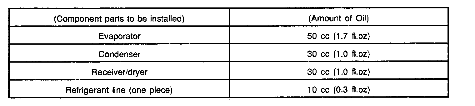 When replacing the system component parts, supply the following amount of oil to the component parts to be installed.