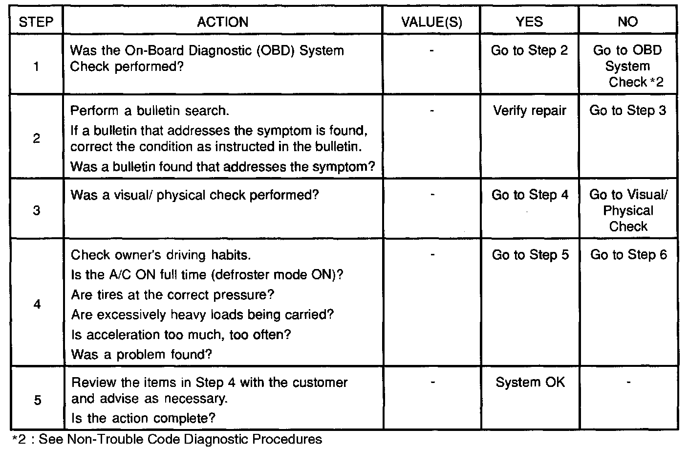 DEFINITION: Fuel economy, as measured by an actual road test, is noticeably lower than expected. Also, economy is noticeably lower than it was on this vehicle at one time, as previously shown by an actual road test. (Non-standard tires will cause odometer readings to be incorrect, and that may cause fuel economy to appear poor when it is actually normal.)