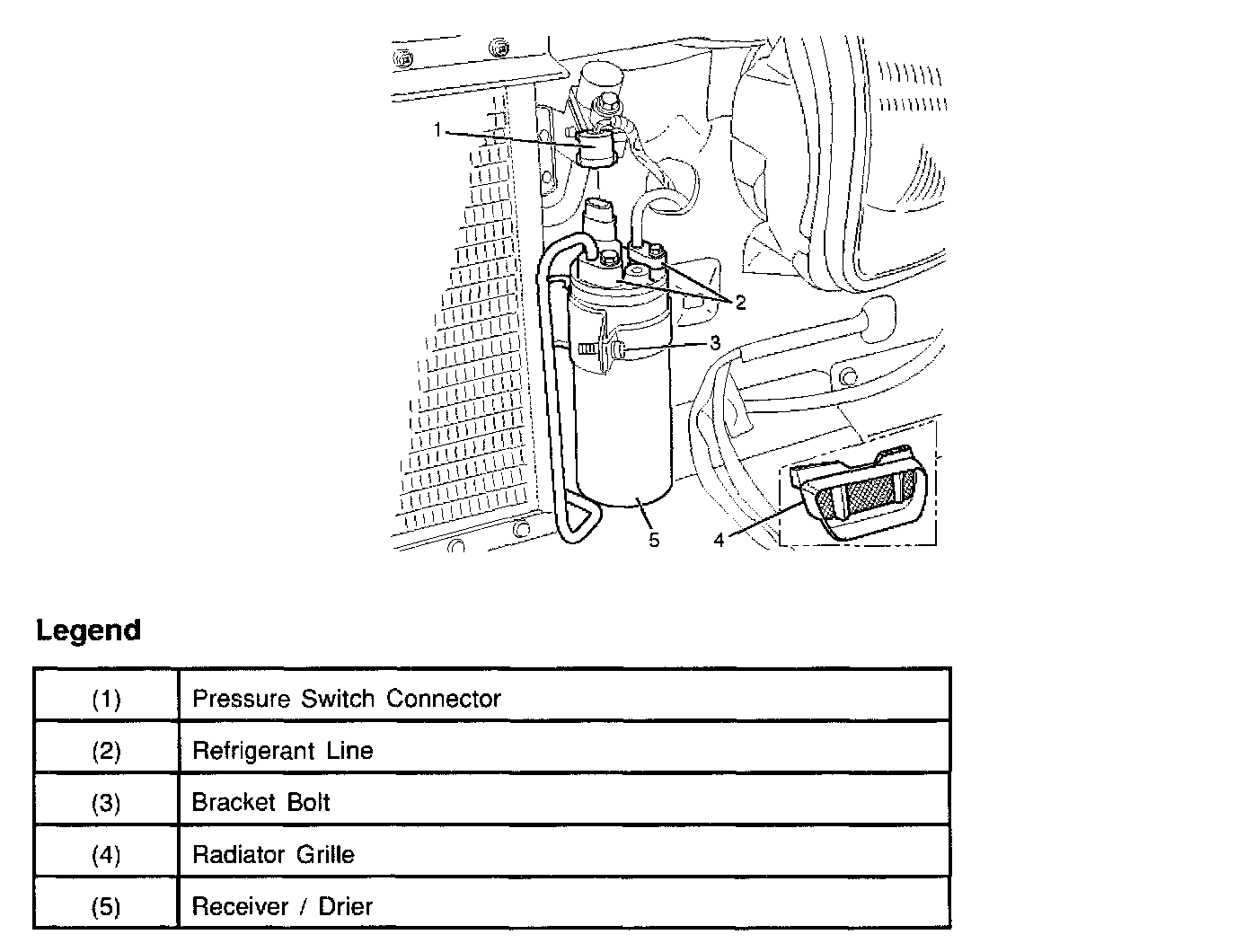 1. If installing a new receiver/dryer, be sure to add 30 cc (1.0 fl oz) of new compressor oil to a new one.