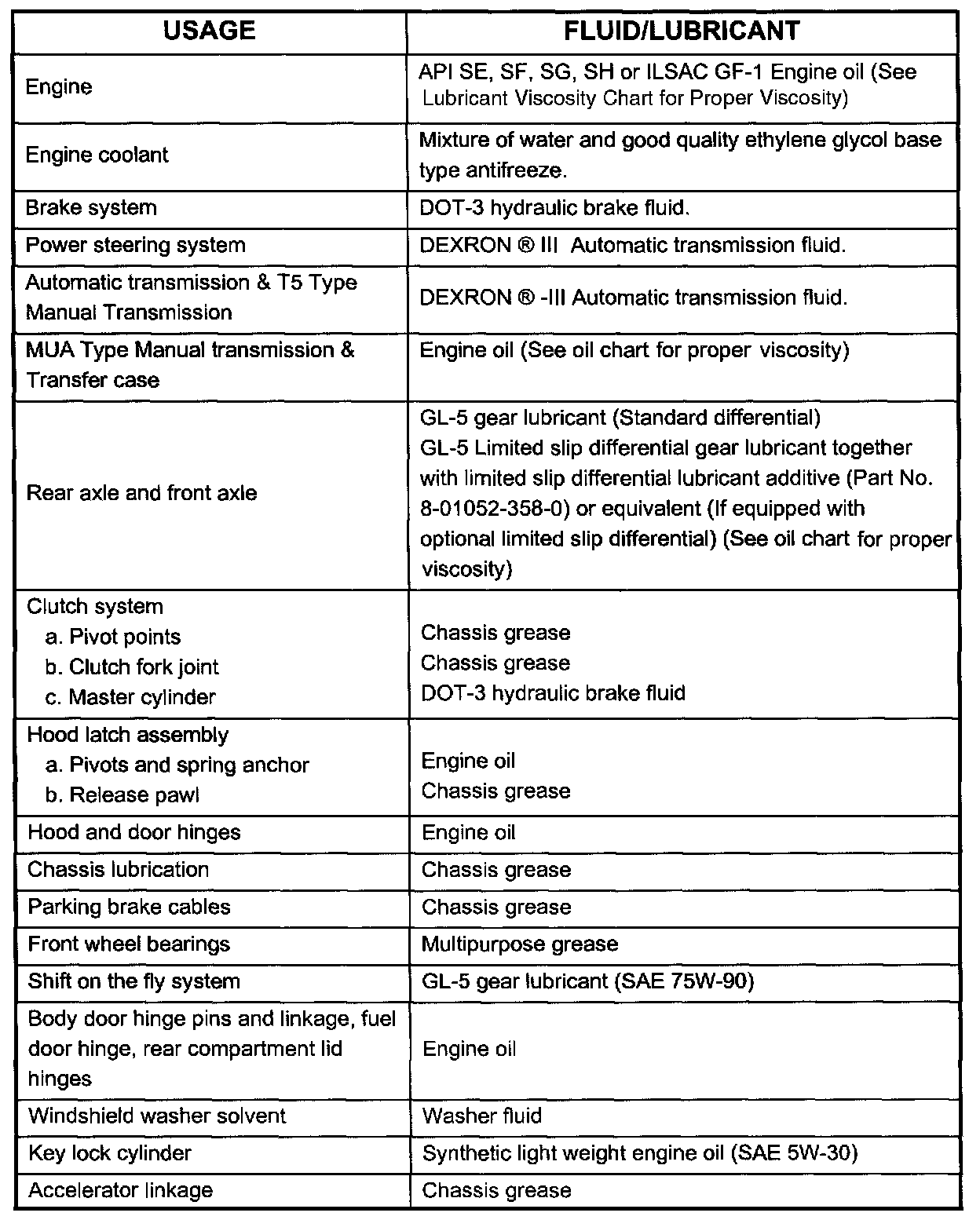 Oil Viscosity Chart For Manual Transmission And Transfer Case: